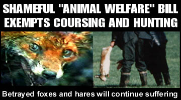While the Bill sets out to protect animals from cruelty and unnecessary suffering, stating among its provisions that to terrify or bait an animal is prohibited by law, it then chooses to exempt hare coursing, which most certainly constitutes baiting and terrifying an animal, and causing it unnecessary suffering! If it were not obviously cruel, it would not have to be specially exempted, nor would other forms of hunting wild animals with dogs.
